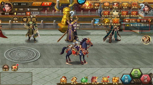 游戏内还设有完善的任务体系,玩家完成各类任务后能获取丰厚奖励,这些奖励可以帮助玩家更高效地推进统一三国的进程。