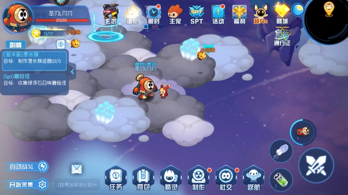 浮空苗的星能:大家要留意云霄星的独特功能“跳跃”。在云朵上,我们可以通过跳跃并蓄力来调整方向,松开手就能朝着目标方向移动。刚开始使用时,方向可能不太好掌控,多尝试调整几次就会熟练。浮空苗的星能位于地图左上角,需要借助跳跃功能才能到达那里。