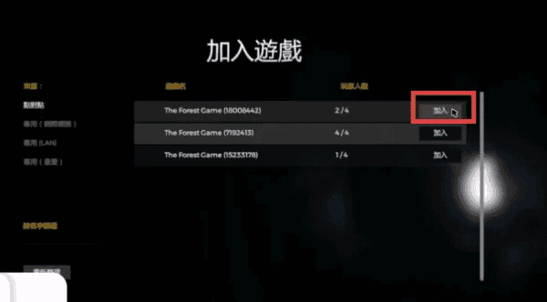 选择好联机房间后,选择红色方框中的“加入”按钮;