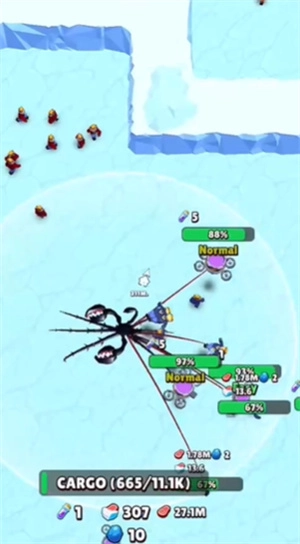 游戏的地图区域里散布着大量怪物,需要快速将它们吞噬,积累足够能量后就能顺利升级。