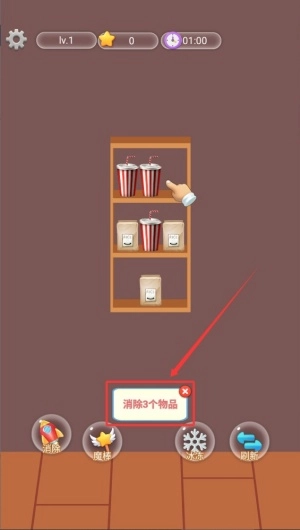 玩家需消除屏幕上所有可消除的物品方可通关,要留意观察整体布局,规划出最优的消除路线。