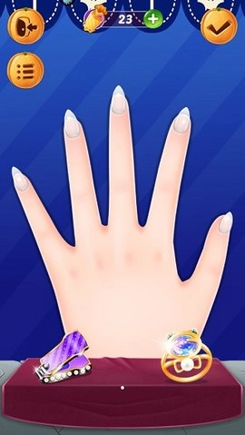 点击“播放”按钮即可进入游戏。2. 进入后,先用指甲刀修剪出好看的指甲形状,再用各式各样精致的贴纸、图案和宝石来装饰美化。