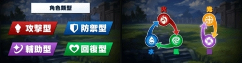 角色类型划分为四类,即攻击型、防御型、辅助型和回复型,这四类角色缺一不可。