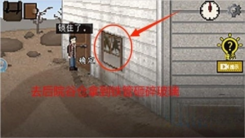 5、抵达一栋大房子前,前院大门紧锁,只能绕到后院进入,还在那里遇到了其他幸存者。要是对某些地方心存疑惑,记得点击旁边的提示按钮寻求帮助。