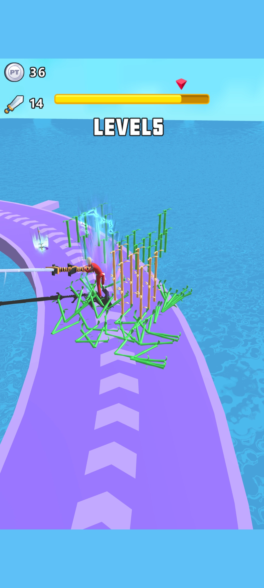 在前进的过程中使用手指左右移动,来收集更多的剑。