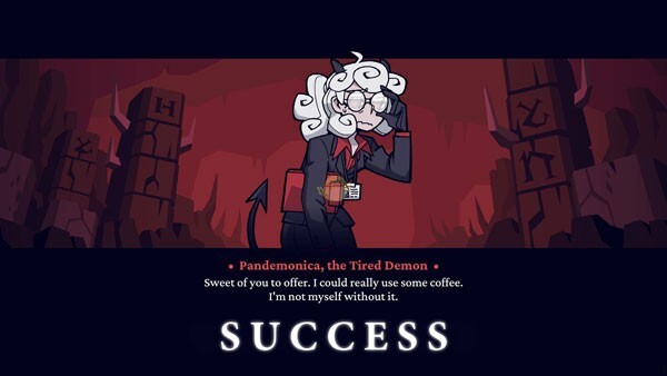攻略:在关卡VIII攻略过程中,与「地狱女皇」路西法的对话环节,第一次选择选项2「不,谢谢。但是您可以加入我的后宫」,第二次选择选项2「我可以提供咖啡,回合制策略及巧克力煎饼」,就能获得该内容。