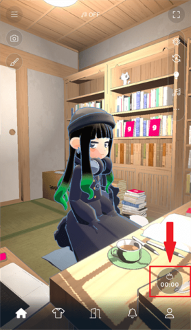 3、挑选自己钟爱的房间风格,房间内会呈现角色坐在桌前的萌趣场景,玩家能够在这个环境里随意行动。