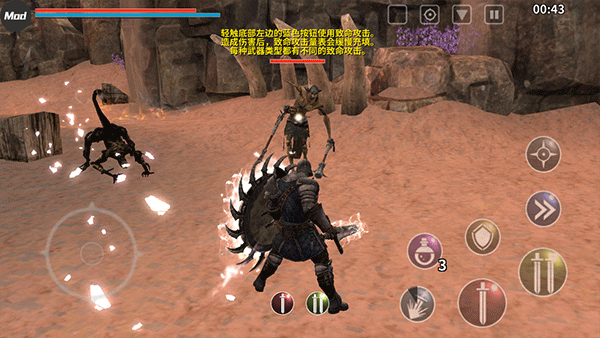 2、进入游戏后,玩家将化身一名勇敢的骑士开启冒险之旅,左侧按键负责操控移动方向,右侧按键则用于控制攻击、释放技能等操作。