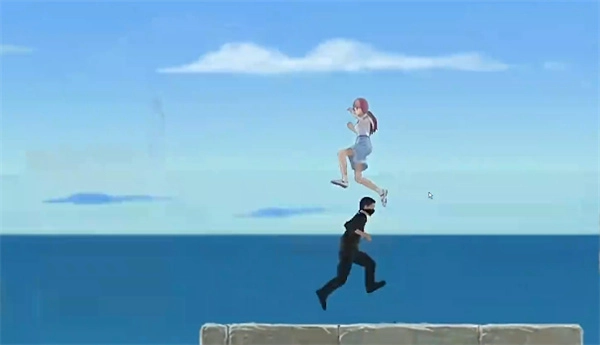 3、来到海边,跳跃的时候掌握力度,绝不能掉下去。