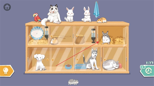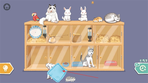 4、把仓鼠这类小动物放进对应的收纳格里,将所有宠物都整理妥当,从而完成收纳任务。