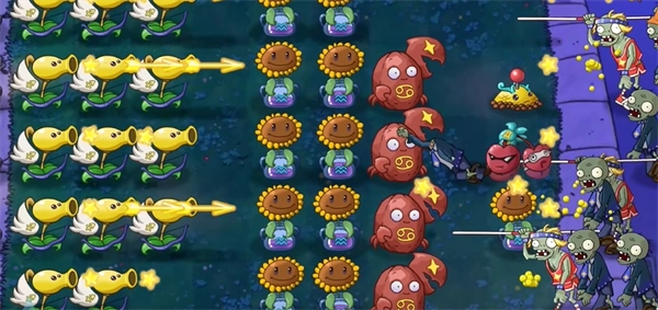 双子樱桃:能对3×3范围内的僵尸造成1800点爆炸伤害,还会把被炸死的僵尸转化为3颗跟踪星星子弹。