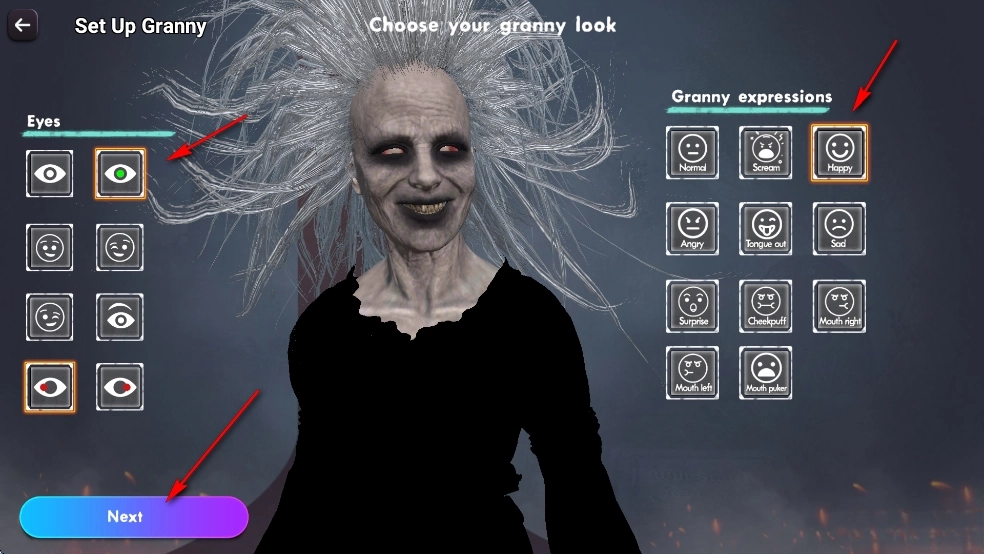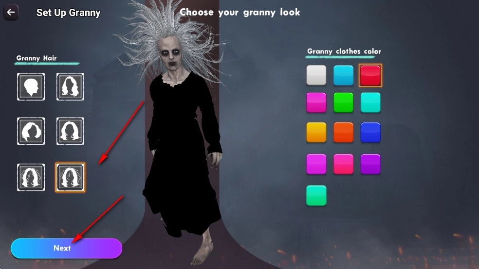 选择奶奶发型和衣服颜色后点击【Next】