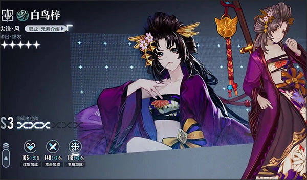 首先要提到的是不少玩家都比较熟悉的白鸟,作为后期推出的原创角色,制作团队在其角色设定与技能设计上投入了不少精力,堪称风系输出与爆发能力的典型代表。作为尖峰职业里极具特色的角色,白鸟的单点爆发伤害相当出色,同时兼具对单与对群攻击能力,再加上多重技能带来的伤害加成,在输出表现上可以说是无可挑剔。