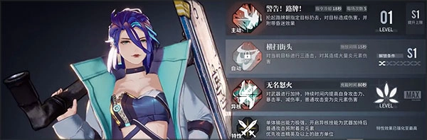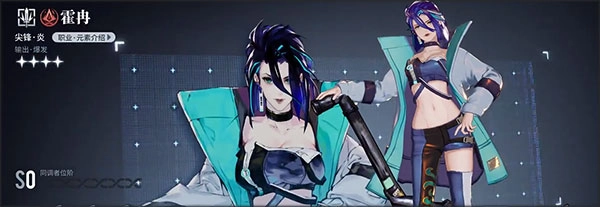 这是唯一一个四星级别的尖峰角色,属性为炎属性。它是上面那位角色的下位替代,输出和爆发能力都相当不错。不过,相较于上面那位角色拥有的范围性伤害,这个角色的整体单体输出能力更为突出。它的所有技能都旨在加强单体输出能力,能够有效对抗敌人中的精英敌人和特定角色。