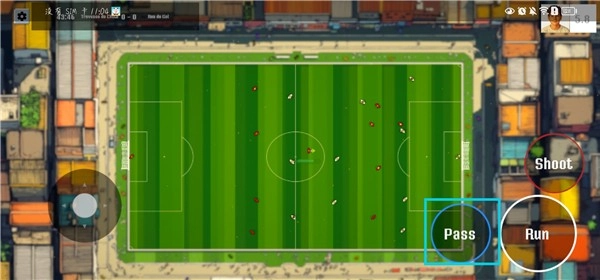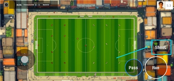 1、进入比赛后,首先由你发球,通过操控左侧遥杆来调整方向,然后点击【shoot】按钮把球踢出。