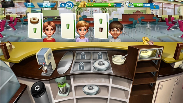 随着玩家持续解锁关卡,能获取更多新食材与道具,同时也会愈发手忙脚乱。在此小编分享一个小技巧:不少客人会选择点套餐,而套餐里只要上了其中一份食物就能延长顾客的等待时间,所以可以提前准备一些饮品,用来增加顾客的等待时长。