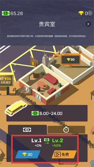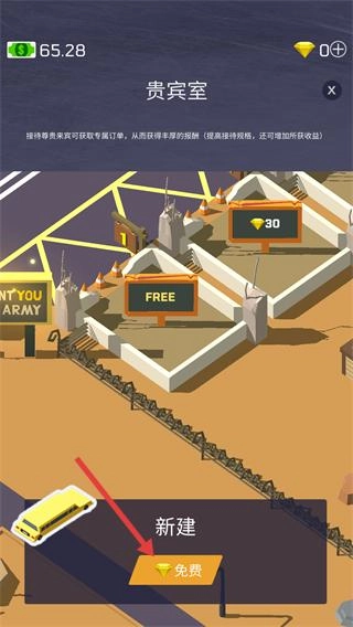 1、点击标有【FREE】的建筑区域,进入【贵宾室】界面,可解锁对应的建筑功能。