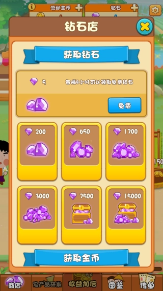 3、你可以在左下角的商店中,看到许多的钻石购买,也可以免费领取5个钻石。
