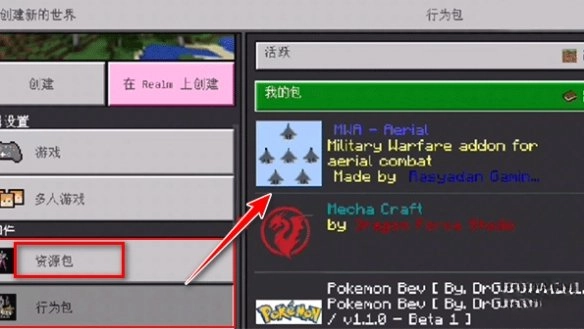 7、返回游戏,创建世界,在资源包中就可以选择刚才的mod模组了。