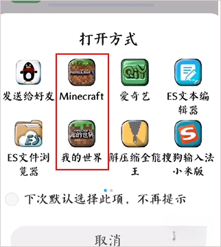 4、有时,部分手机系统自带的浏览器可以直接选择打开MOD模组运行环境,此时我们选择《我的世界》游戏。