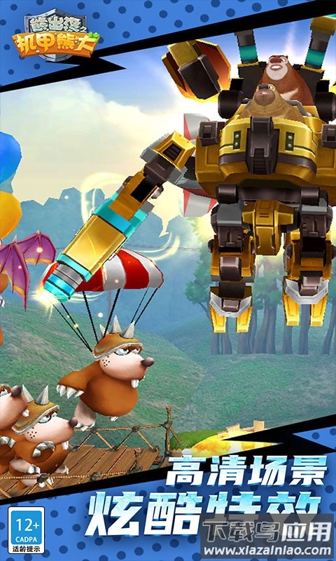 6、超酷炫的3D变形机甲冒险,战神熊大开启究极变形,刺激的战斗等你来挑战。