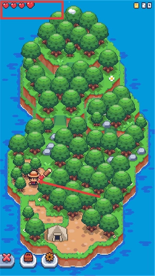 2、移动角色靠近到洞穴并进行互动来恢复爱心;
