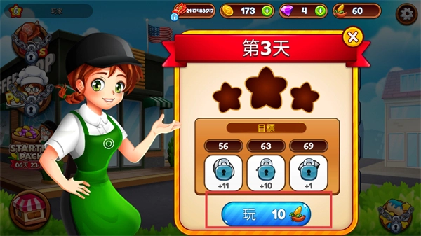 2、进入第3天挑战界面,努力达成分数目标解锁全部星星奖励。