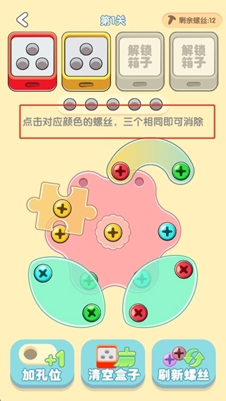 3.点击相同颜色的螺丝,集齐三个即可完成消除。
