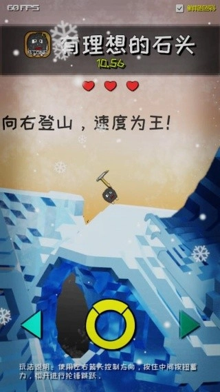 2、操控小石头不断往上跳,长按屏幕积蓄力量,帮助它一步步爬向更高的平台;