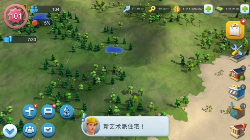 只有一幅地图,玩家通过人口增加,可以进行解锁区域,区域的解锁还需要部分道具。地图不可以改变,但是玩家可以增加建筑物、美化物进行装饰。