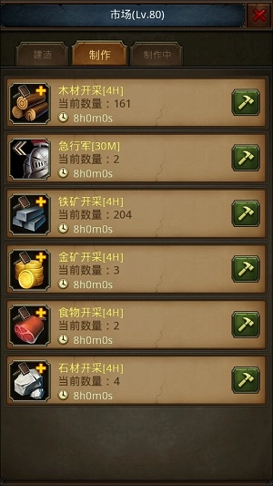 功能:花费一定时间与部分资源,制作出能在特定时段内提升特定资源的物品。