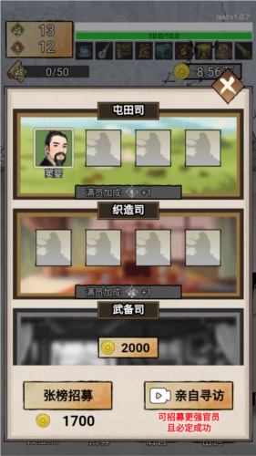 在游戏里,你能够通过抽取卡牌的方式,获得众多古代的贤能臣子与美貌佳人。这些角色会在你治理国家的过程中,成为你坚实的助力与亲密的伙伴。每张卡牌都对应着一位历史上真实存在的名臣或佳丽,并且都配有详尽的人物背景介绍,帮助你深入了解他们在历史长河中的故事。