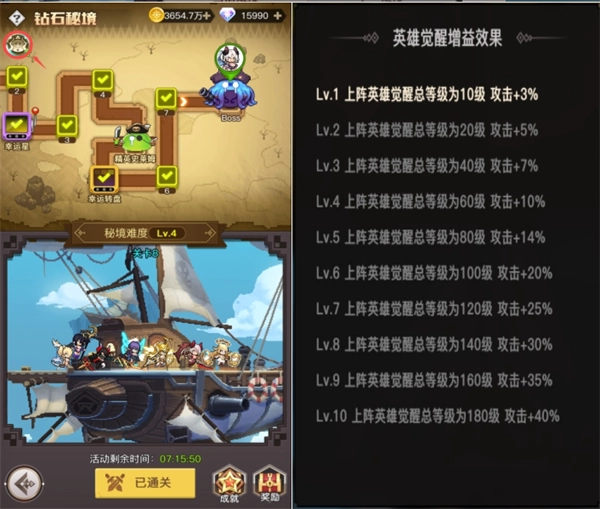 进入活动主界面后,点击右下方的奖励按钮,就能详细查看不同难度与关卡对应的奖励,以及各难度所需的战力要求。