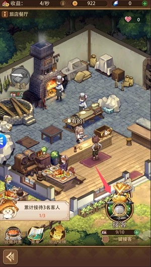 点击接客可以让客人来旅店消费,从而获取收益