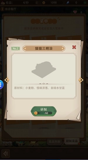 我们可以通过消耗金币来获取新的菜谱食材