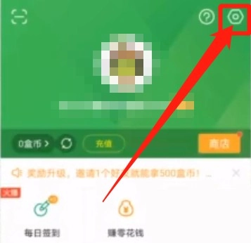 首先启动4399游戏盒应用,进入后找到底部导航栏的“我的”选项并点击,接着在页面右上角找到齿轮形状的设置入口,点击进入设置界面。