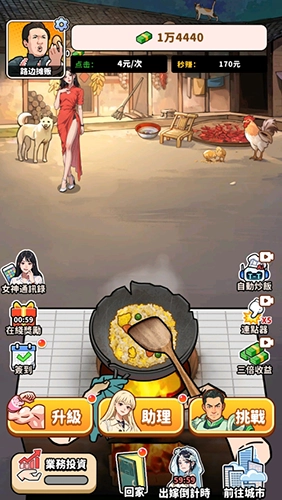 持续制作并售卖可口的食物,你的烹饪技艺会逐步提升,生产规模也能逐步扩大,还能雇佣帮手,让厨房的生意越来越兴旺。