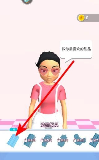 进入游戏后,系统会提示你制作心仪的甜品。第一步是挑选模具,不同模具能塑造出不同造型的甜品,选好模具后,就能进入到下一个配料选择的环节了。