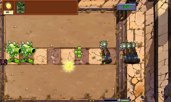 配置完成后点击“开始冒险”,就能正式开启关卡挑战。要合理安排阳光资源,根据不断袭来的僵尸潮,及时栽种攻击类或防御类植物进行应对。