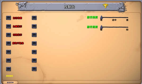完成命名后进入控制台选项,就能开启自动拾取豌豆、显示植物血量等便捷功能,还能依据自己的操作习惯来调整游戏难度和运行速度。