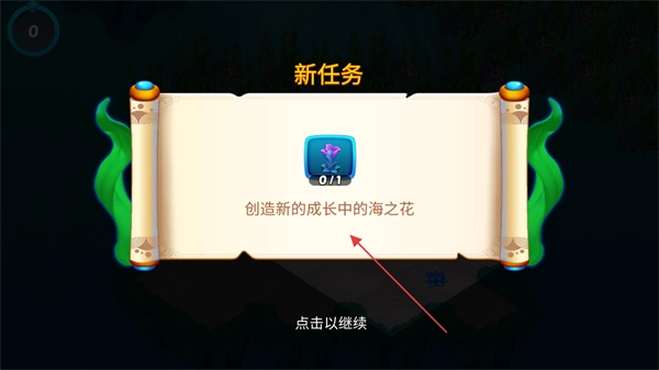 收到新任务啦,得创造一朵正在成长的海之花,点击“继续”就能开启任务咯。