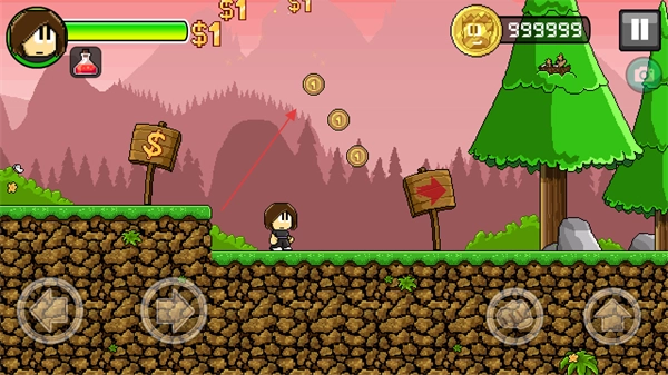 操控角色拾取金币,顺着箭头指引的路线移动,积累财富与分数。