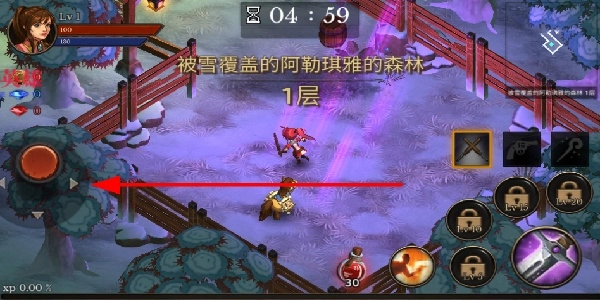 通过摇杆操控角色在地牢场景中移动,探索各个区域,搜寻怪物与道具,以此推动地牢冒险的进程。