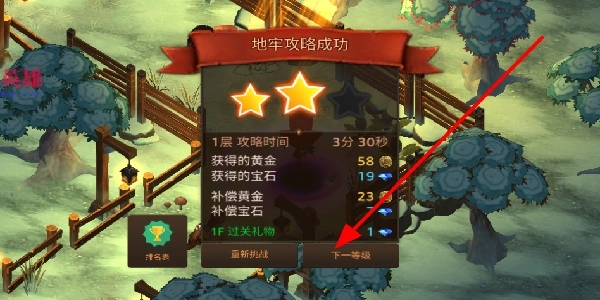 完成地牢关卡即可领取奖励,获取黄金、宝石等资源,解锁新的游戏内容,继续地牢冒险之旅。