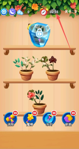 这些道具都挺实用的,洗牌铲可以重新排列花盆里的花朵,“魔力花肥”则能直接生成想要的花,当步数不够的时候,它们就能派上用场,助力通关。