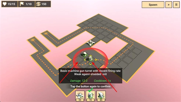 在地图关键路径旁消耗金币部署防御塔,以此开启敌人的防御进程。