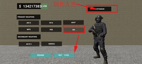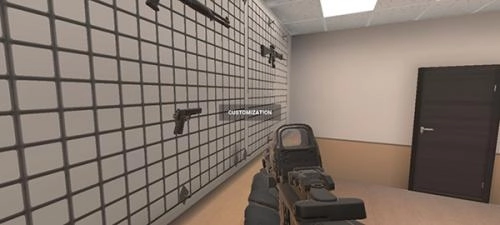 进入游戏后,移动到武器墙面并点击“customzaton”,即可进入武器切换或角色服饰切换的界面。