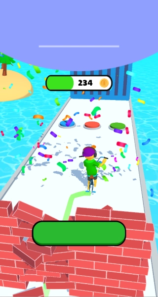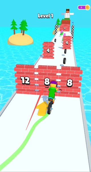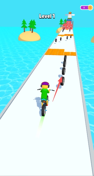 在临近终点时,如果车轮数量还比较充裕,就能凭借高速度直接向前冲刺;要是车轮数量不够,那就放缓速度,把剩下的车轮逐个收集起来,以此保证能够顺利通过关卡。