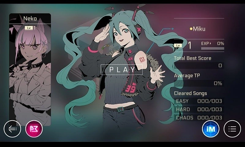 左右滑动屏幕后点击选择角色(此处以ConneR为例),点击「PLAY」按钮即可进入该角色对应的选曲界面。