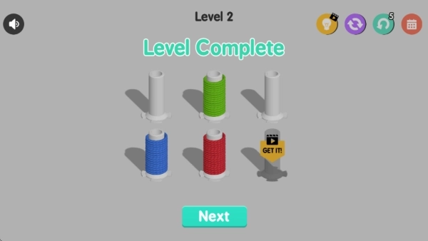 2.动态难度平衡:关卡难度曲线平滑自然,前期循序渐进引导玩家熟悉操作逻辑,后期则借助毛线交叉缠绕、筒位数量限制等巧妙设计,逐步提升挑战强度。